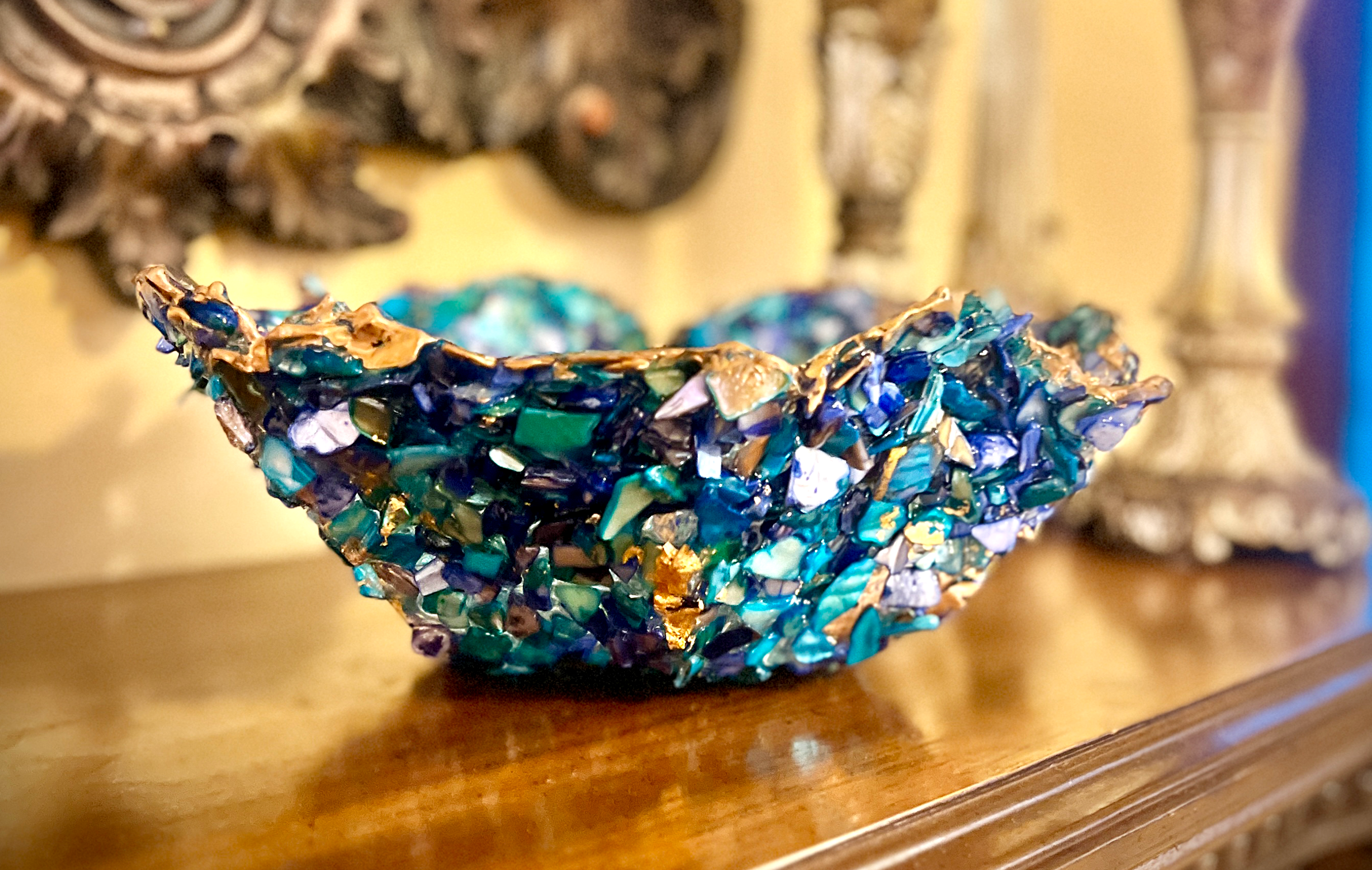 Blue Coastal No. 5 Resin and Crushed Seashell Bowl